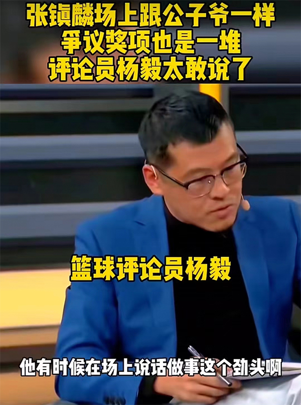 杨毅也表示这个奖我之前没听说过,为什么今年突然有这么一个呢?这个张镇麟也打了好几年了,他怎么还能评这个奖,这我也不懂,我看着也晕。杨毅的这番调侃是又把张镇麟夹到了风口浪尖之上。