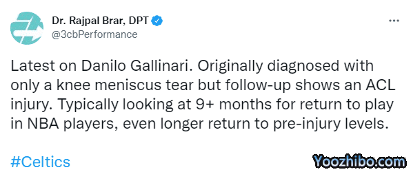 对于自己惨遭重伤,加里纳利本人发声:这对我来说是艰难的一周,因为我了解到我的伤到了什么程度。篮球对我来说意味着一切,不能和凯尔特人的队友们一起在球场上打球让我很伤心。