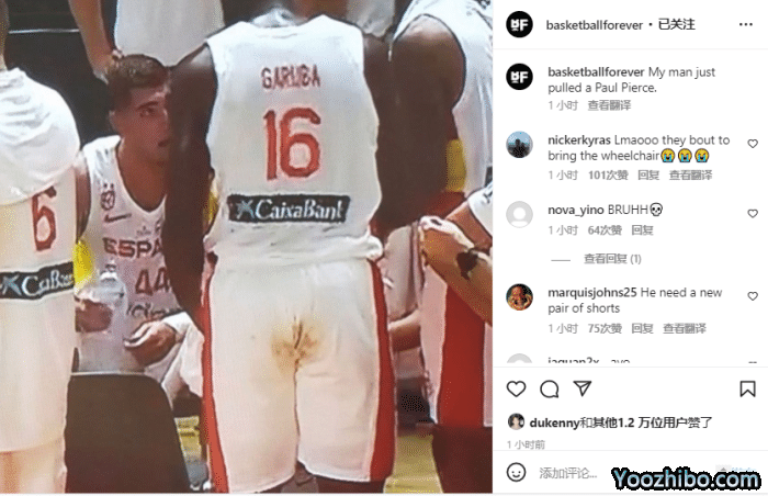 来源:360直播08-28 12:08360直播08月28日讯 ,男篮世预赛西班牙86-64大胜荷兰,火箭球员加鲁巴在赛场上拉稀拉裤裆一幕引热议,裆部的黄色在白色球裤上非常显眼;皮尔斯、哈登也曾遭遇如此尴尬的事情。