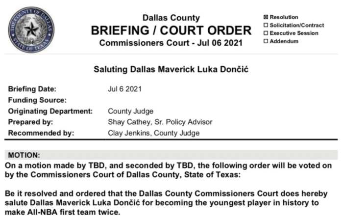当地时间7月6日确定为东契奇日,之后东契奇本人发推:感谢达拉斯政府和独行侠球迷们给我的这份荣誉。