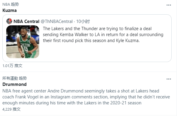 庄神抱怨湖人冲上热搜,库兹马则是因被摆上货架引热议。