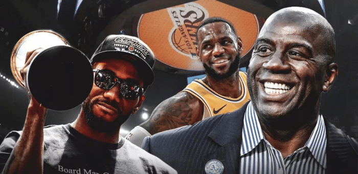 2019夏天,刚率领猛龙夺冠的小卡,试水自由市场,立马引起多支球队哄抢,湖人最为积极和最有诚意,出动詹眉双核和包括魔术师在内的多位名宿,集体出动招募。
