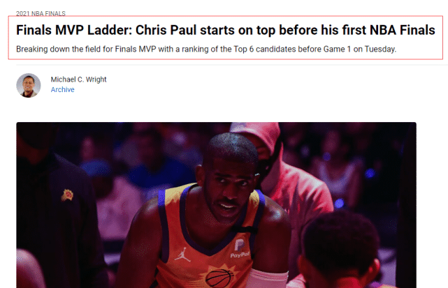 来源:360直播07-06 14:49360直播讯 北京时间7月6日,雄鹿太阳总决赛将在明天正式开打,联盟官网在今天发布了本次总决赛第一期最有价值球员排行榜,其中克里斯保罗排在第一位。