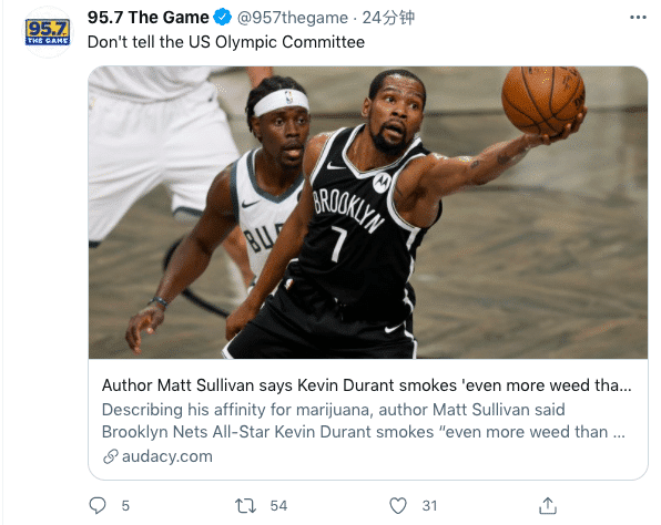 MATT说的是真的吗?事实上,此前杜兰特也一度站出来支持这个东西的合法化,甚至当NBA不再对于这个东西进行检测后,杜兰特还点赞给予了肯定。