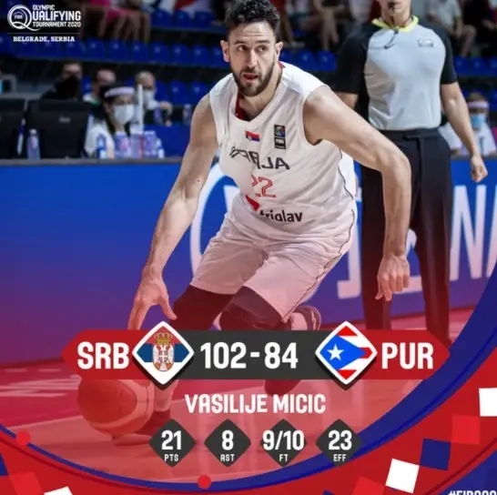 本场比赛,瓦西里耶-米齐奇10投5中得到21分,内马尼亚-别利察9中5得到18分,米洛什-特奥多西奇6投3中得到11分,博班-马里亚诺维奇4中2得到5分。虽然没有约基奇,但是塞尔维亚仍然实力不俗,将在赛区决赛面对意大利,胜者将获得奥运会名额。一旦全员齐整,他们是具备冲击奖牌实力的!