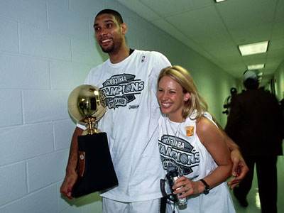 邓肯和前妻艾米也算是日久生情,邓肯是篮球队的老大,艾米是校花,同时也是啦啦队的队长,朝夕相处,也让两人产生了爱情走在了一起。相比其他球星一直拖着迟迟不肯结婚,邓肯还是很实诚的,2001年,25岁的邓肯和艾米走进了婚姻的殿堂,两人也有了两个孩子,那时候的邓肯是幸福的,艾米经常会带着孩子出现在观众席给邓肯加油。