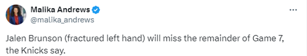 来源:360直播05-20 14:58360直播讯 北京时间5月20日,尼克斯主场抢七不敌步行者,总比分3-4被淘汰出局,纽约惨烈出局,布伦森拼到左手骨折,哈特带伤拼到犯满毕业,阿努诺比火线复出强忍5分钟便无奈退赛。