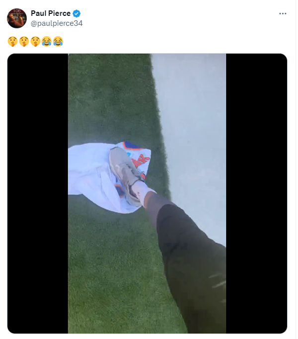 尼克斯出局后,凯尔特人名宿皮尔斯的败人品行为引争议,他发推晒出自己怒踩布伦森的尼克斯球衣的视频,并且自拍自言:这下咋说?让你们继续叽叽歪歪?滚吧!皮尔斯还配上闭嘴+笑哭的表情。