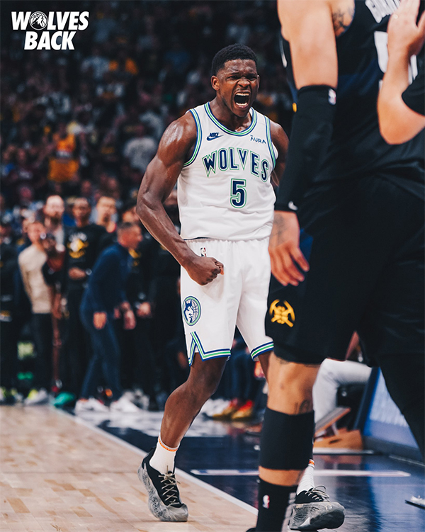 然而到了下半场,森林狼38-58落后20分后爱德华兹和唐斯带队疯狂反扑,群狼打出21-3的超级反击高潮,三节打完森林狼仅落后1分,比赛悬念回来了。期间华子抢断反击暴扣,怒吼咆哮疯狂庆祝。