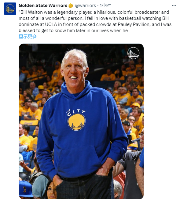 勇士官推:比尔-沃顿是一位传奇球员、一位风趣幽默的播音员,最重要的是,他是一位了不起的人。