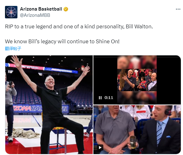 比尔-沃顿的母校加州大学洛杉矶分校(UCLA)男篮官推写道:向两届NCAA总冠军比尔-沃顿的去世表示哀悼,他是奈史密斯名人堂成员,也是加州大学洛杉矶分校的篮球名人堂成员。