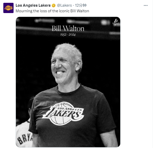 湖人追悼:悼念传奇人物比尔-沃顿。