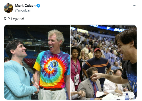 独行侠老板马克-库班晒昔日合影并写道:安息吧!传奇!