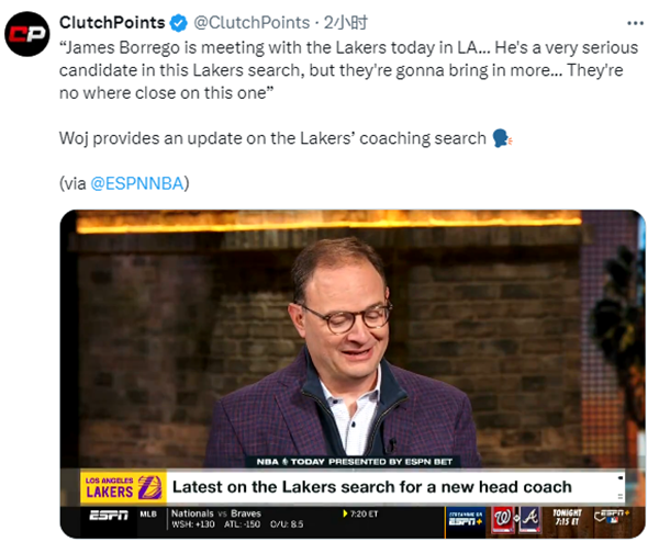据悉,雷迪克正在招募打造自己的教练组,不过woj报道,湖人正在与一些主教练候选人进行长期的深入的交流,鹈鹕首席助教詹姆斯-博雷戈今天将在洛杉矶与湖人进行第二次会面;在湖人的所有候选人中,博雷戈凭借着自己出色的履历脱颖而出。