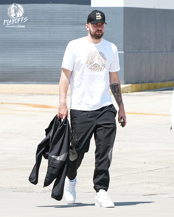 独行侠全队出征客场冲击西部冠军,东契奇、欧文、加福德、华盛顿等球员都是满脸严肃。