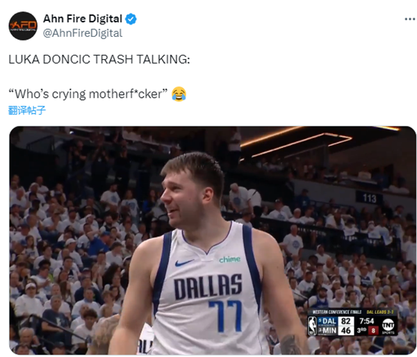 东契奇被骂爱哭鬼后爆粗回应 森林狼球迷遭狂喷