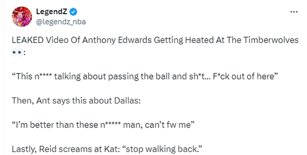 爱德华兹对康利说:我比这些Nxxger(独行侠球员)更好,伙计。之后华子对李凯尔说:兄弟,仅仅把球传给我,该死的。
