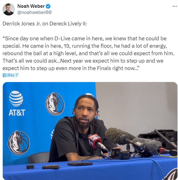 小琼斯盛赞莱夫利,表示:从莱夫利来到这里的第一天,我们就知道他会很特别,他才19岁,跑动迅速,精力充沛,抢篮板能力很强,这就是我们对他的期望。这就是我们唯一的要求,明年我们希望他能有所进步,现在我们希望他在总决赛中表现得更好。