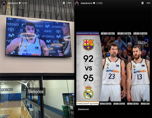 其实东契奇也在球馆中,通过社媒晒出自己在球馆中观看皇马和巴萨的季后赛,也许此时东契奇正在接受康复治疗。