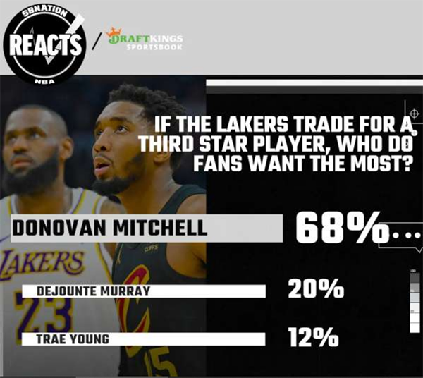 68%湖人球迷希望交易得到米切尔 穆雷支持率高于杨