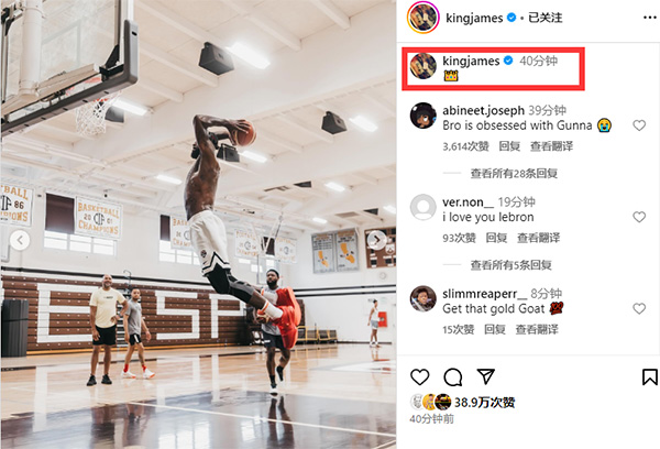 詹姆斯晒训练照 赤膊暴扣秀身材 全力冲击奥运金牌