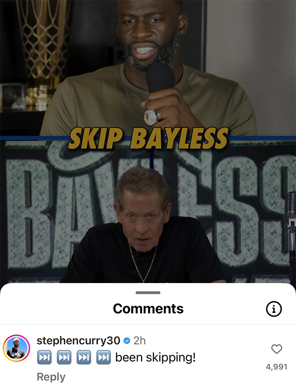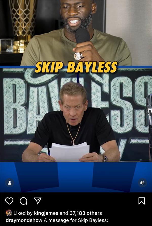 值得一提的是,此前Skip曾在节目中表示:毫不夸张的说,德拉蒙德-格林是NBA历史上最脏的球员,没有之一,我敢保证,如果把他职业生涯中的脏动作剪辑出来,我们能看到一段一天一夜不重演的长视频。