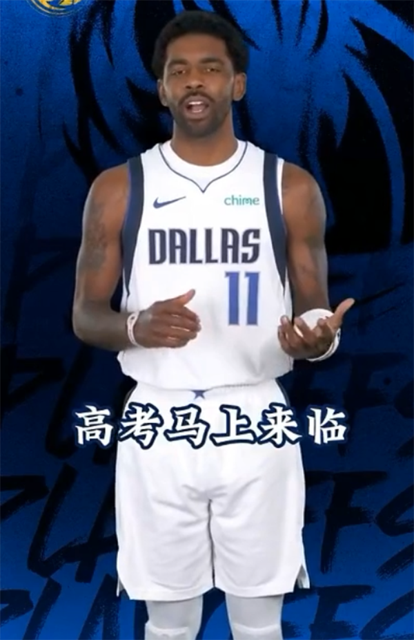 在祝福高考学子的视频中,欧文表示:我是欧文,高考马上来临;哈迪:祝每位考生好运;克莱伯、鲍威尔、莱夫利和小琼斯四人用普通话送“金榜题名”的美好祝福,东契奇用普通话说:高考加油。