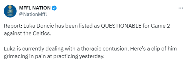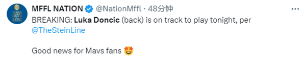 名记Marc Stein进一步报道,尽管昨天在凯尔特人主场举行的媒体发布会上,东契奇身体有明显的不适,但他仍将出战今天的比赛。