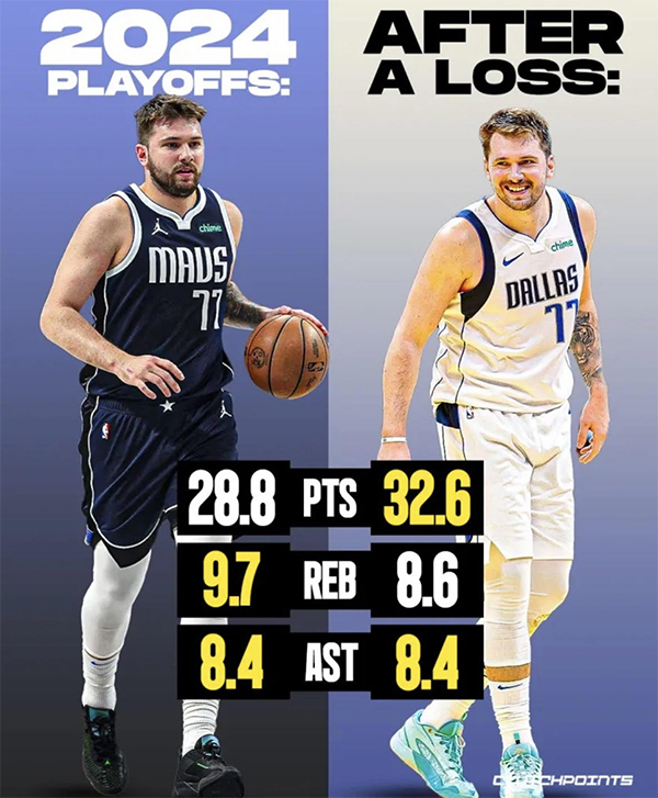 目前,独行侠总决赛大比分0-1落后凯尔特人;据统计,今年季后赛独行侠还没遭遇过连败,东契奇输球后下一场场均32.6分8.6篮板8.4助攻。