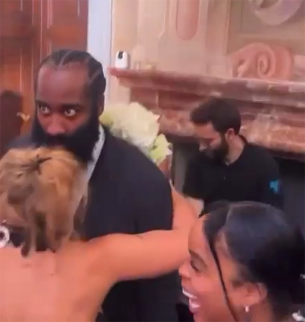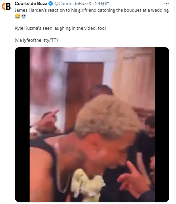 哈登休赛期参加婚礼 女友抢捧花后其震惊表情成焦点