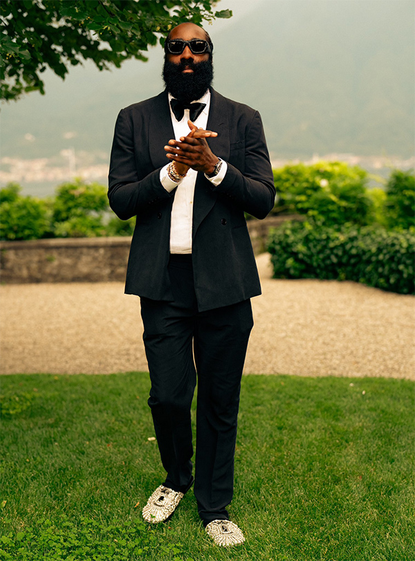 这是哈登在意大利参加隆多婚礼时所穿的服饰,在婚礼现场,哈登现任女友杰西卡-简舍尔抢到传递幸福的手捧花,哈登瞪大双眼的吃惊表情引热议,很多球迷调侃哈登恐婚;今日哈登发推后,有球迷调侃手捧花警告,还有球迷表示:兄弟,该轮到你结婚了。
