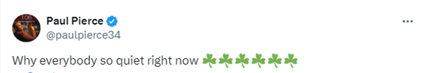 绿军名宿皮尔斯发推写道:为什么现在大家都这么安静;名嘴帕金斯表示凯尔特人让独行侠在主场打得难堪。