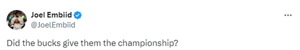 绿军总决赛3-0领先引热议,76人球星恩比德发推写道:雄鹿给他们(凯尔特人)带来了总冠军?