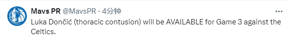 绿军中锋波津伤停,独行侠球星东契奇(胸部挫伤)确定继续带伤出战,据悉,东契奇打止痛针坚持比赛,G2带伤轰下32分11篮板11助攻仍输掉比赛;目前独行侠0-2落后,究竟他们能否捍卫主场,拭目以待吧。
