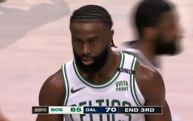 第三节开场之后,凯尔特人的手感非常火热,一度6投全中,布朗、霍勒迪和塔图姆连续得手。随后,布朗继续得分,霍勒迪和塔图姆连中两记三分,布朗暴扣随后飚中三分!塔图姆反击暴扣,绿军很快拉开分差,71-61领先。独行侠随后连得4分,但东契奇强打蒂尔曼再度无功而返。布朗此后两罚全中,随后中投再中!凯尔特人75-65领先。蒂尔曼三分也中!