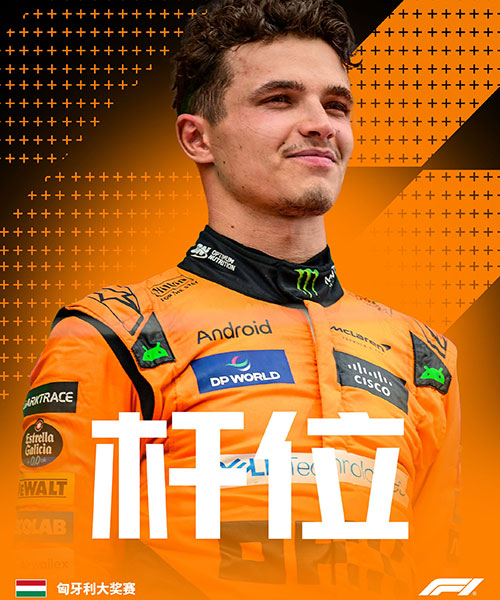 360直播讯 07月20日讯 F1匈牙利大奖赛排位赛战罢,迈凯伦车手诺里斯获得杆位,他的队友皮亚斯特里第二,迈凯伦时隔十二年再度包揽发车头排。