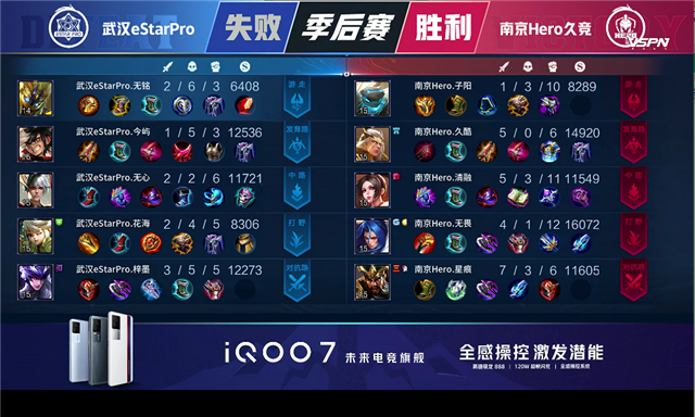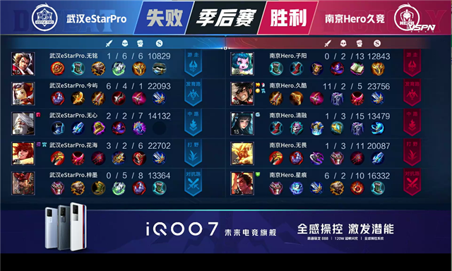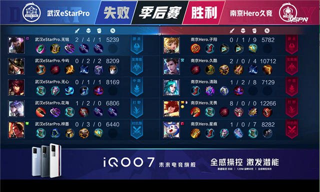 南京Hero久竞选用:梦奇 裴擒虎 王昭君 狄仁杰 孙膑