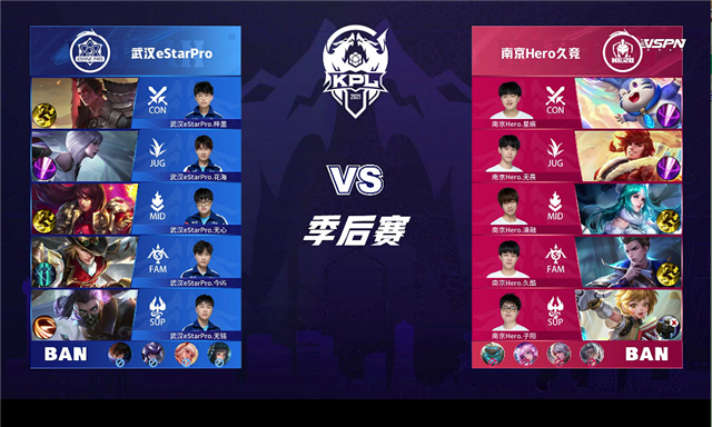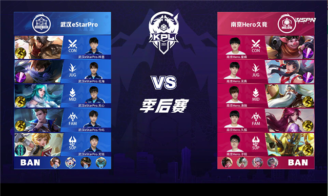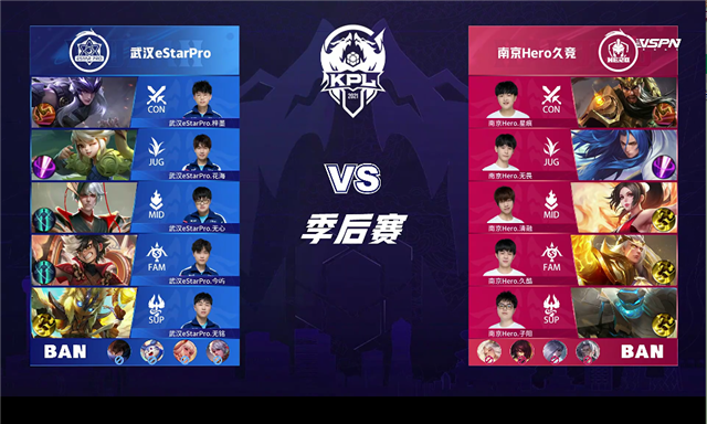360直播讯 6月5日2021KPL春季赛季后赛胜者组第一轮,由武汉eStarPro对阵南京Hero久竞,以下是本场比赛快讯。