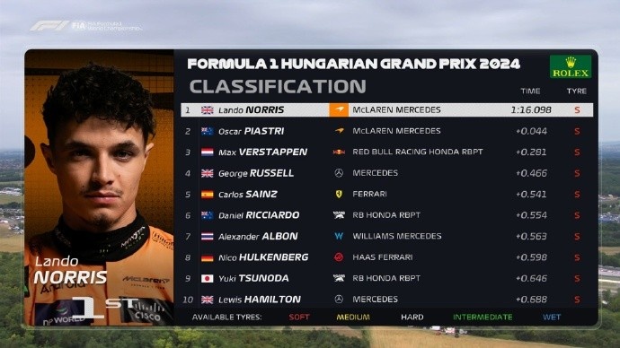 07月20日 2024F1匈牙利大奖赛第三次练习赛 全场录像回放