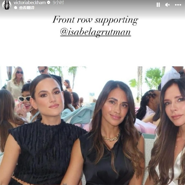 梅西的爱人安东内拉和贝嫂维多利亚一起出席时装秀,梅西在迈阿密踢球,贝克汉姆是迈阿密国际的创始人和俱乐部主席,所以安东内拉和维多利亚的关系也很好。维多利亚在社交媒体上晒出两人的合影,配文:“亲亲安东内拉”
