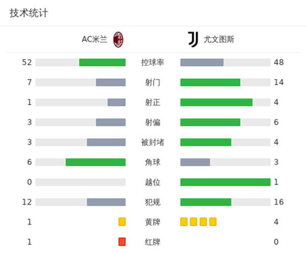 来源:360直播10-23 06:20 360直播讯 :北京时间10月23日意甲 联赛 第9轮,AC米兰主场对阵尤文图斯。上半场,吉鲁蝎子摆尾式射门踢疵,吉鲁停球打门被什琴斯尼倒地扑出,佳夫作为最后一名防守球员放倒基恩被直红罚下,基恩近距离抢点打偏;下半场,洛卡特利远射击中克鲁尼奇后变线入网,弗拉霍维奇抽射被米兰特单手扑出,坎比亚索兜射被扑,弗拉霍维奇补射也被米兰特封堵。最终比分0-1。