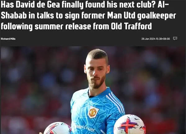 360直播1月29日讯 据《每日邮报》报道,前曼联门将、自由球员大卫-德赫亚正在与沙特职业联赛球队利雅得青年谈判。