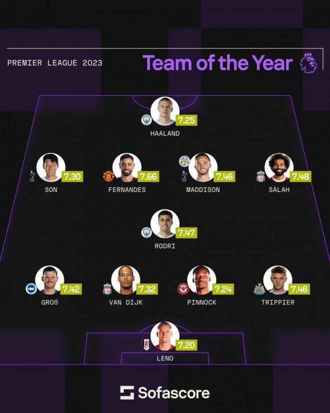 Sofascore英超2023年最佳阵容: