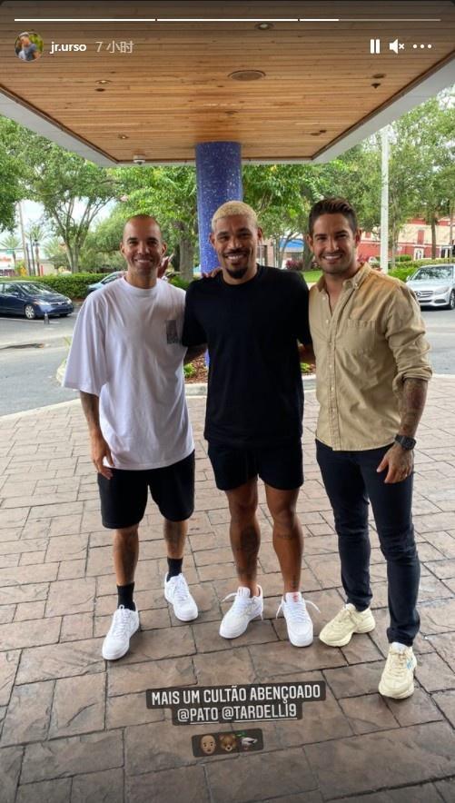 360直播讯 7月12日消息,前鲁能泰山外援乌索晒出了和另外两名前中超外援帕托以及塔尔德利的合影。